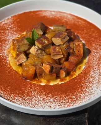 Laisser confire le tout quelques minutes à feu moyen. Dresser en alternant melon/foie gras/melon/foie gras dans l’emporte-pièce, saupoudrer du paprika sur les contours.